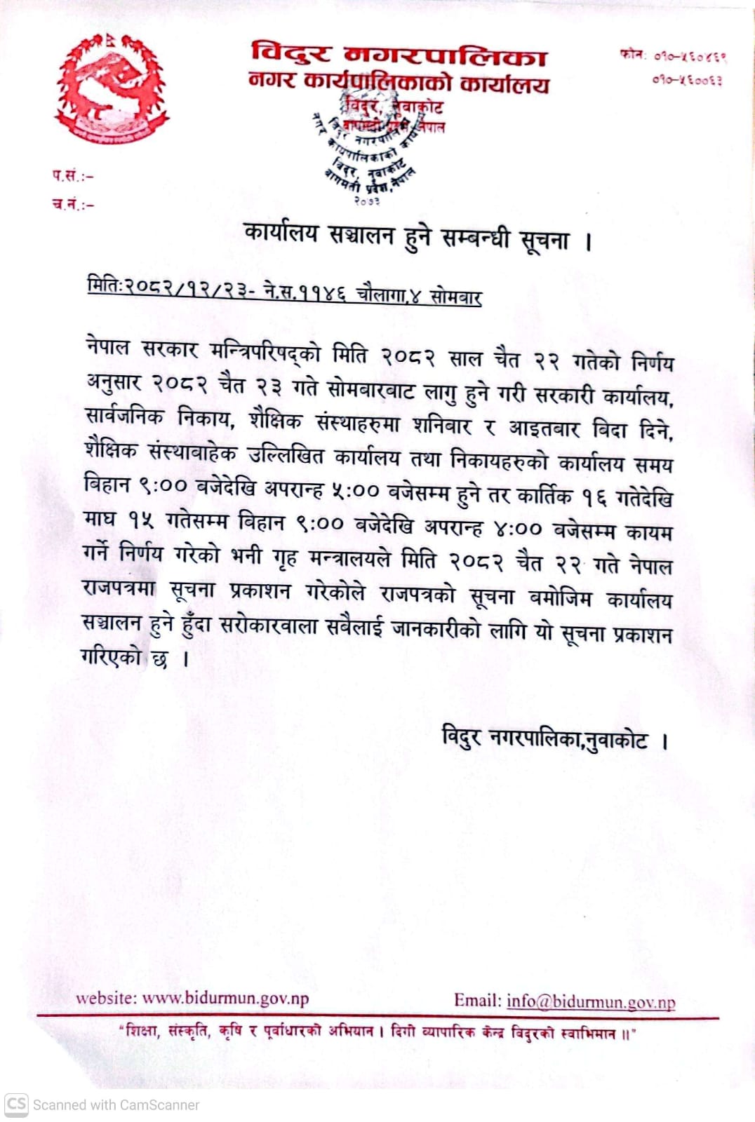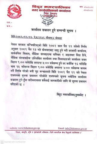 कार्यालय सञ्चालन हुने सम्बन्धी सूचना ।