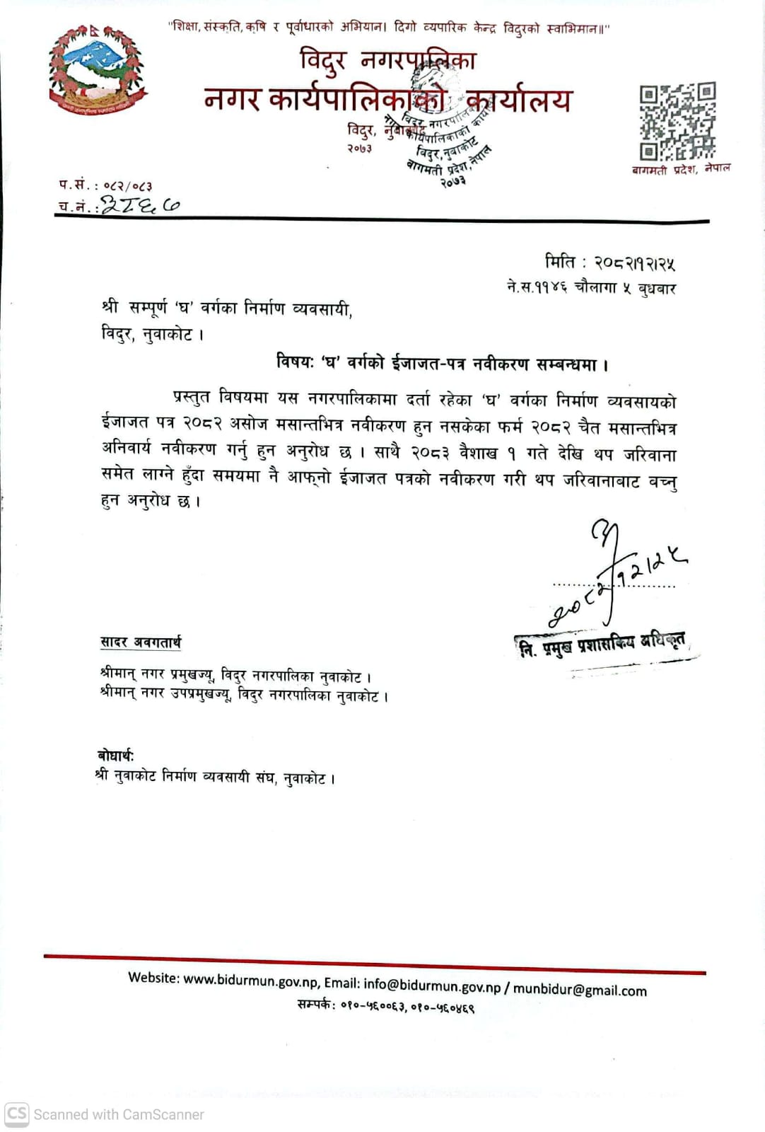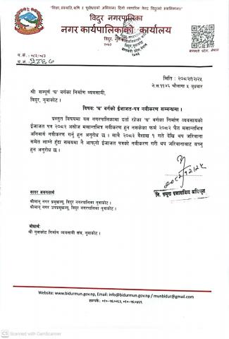 "घ" वर्गको ईजाजत - पत्र नबिकरण सम्बन्धी सूचना ।