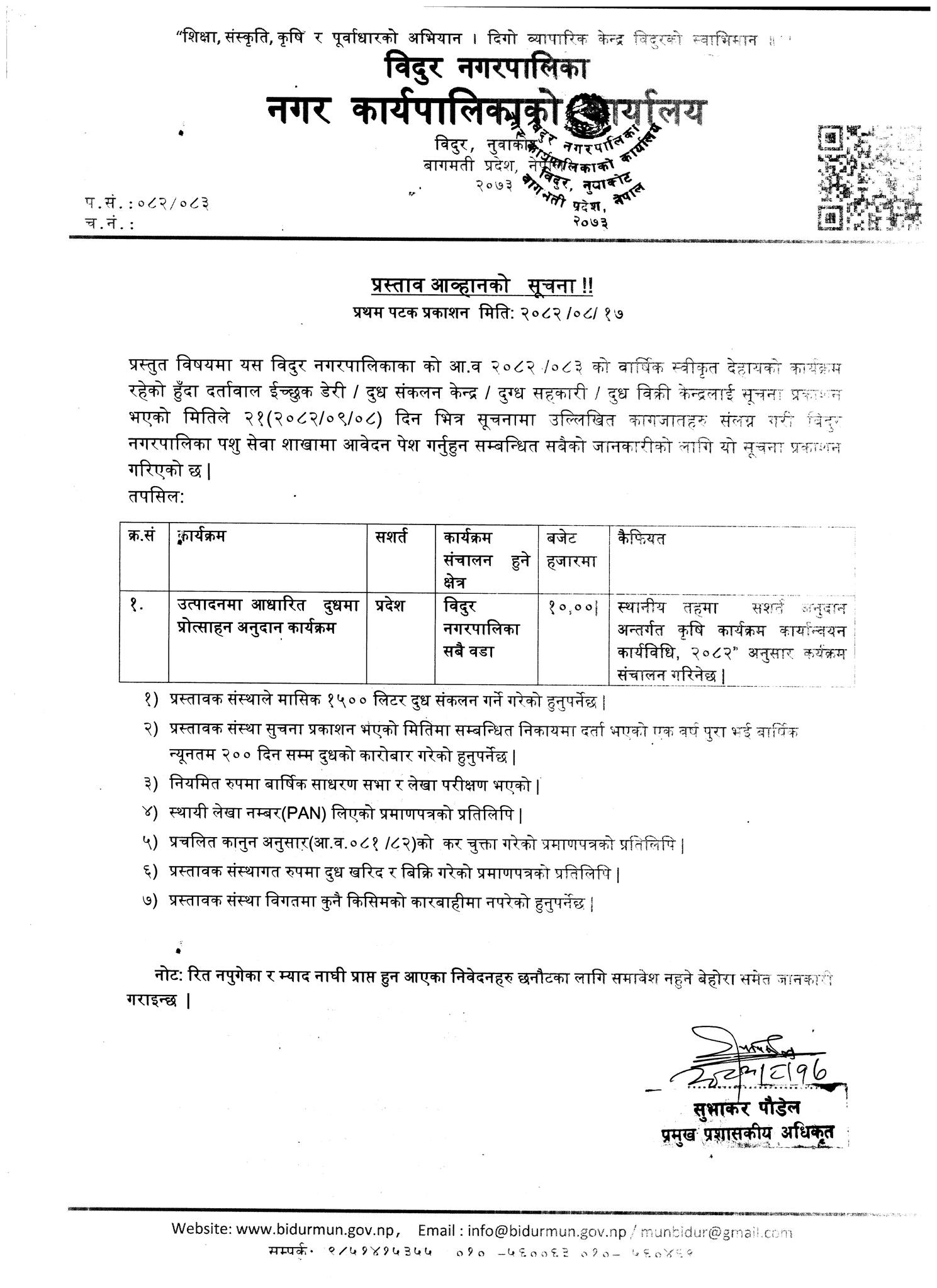 प्रस्ताव आब्हानको सूचना।