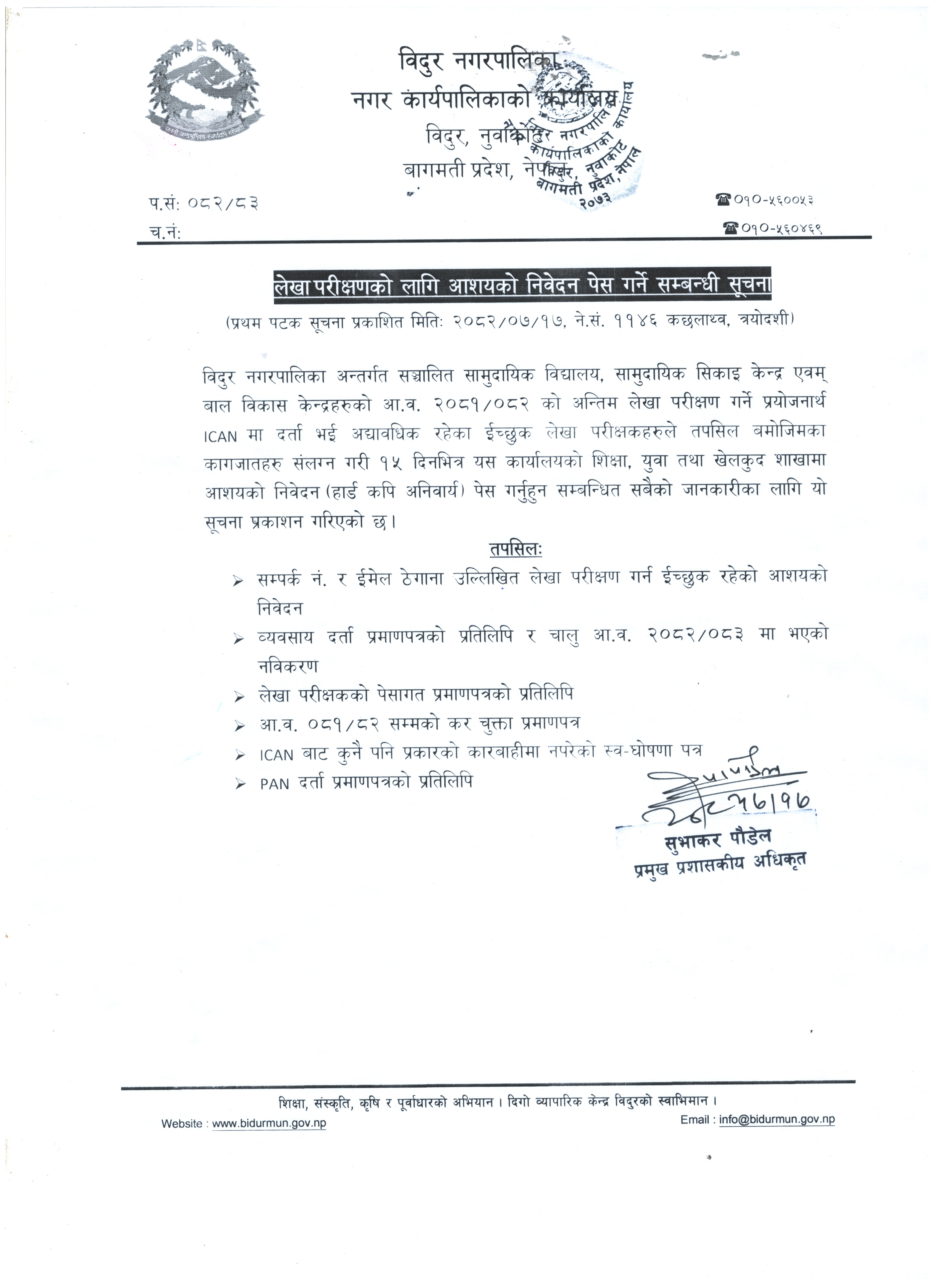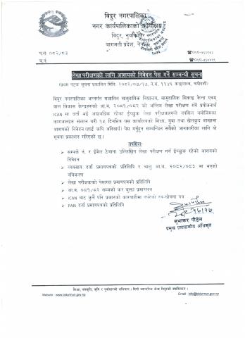 लेखा परीक्षण लागि आशयको निवेदन पेस गर्ने सम्बन्धी सूचना !