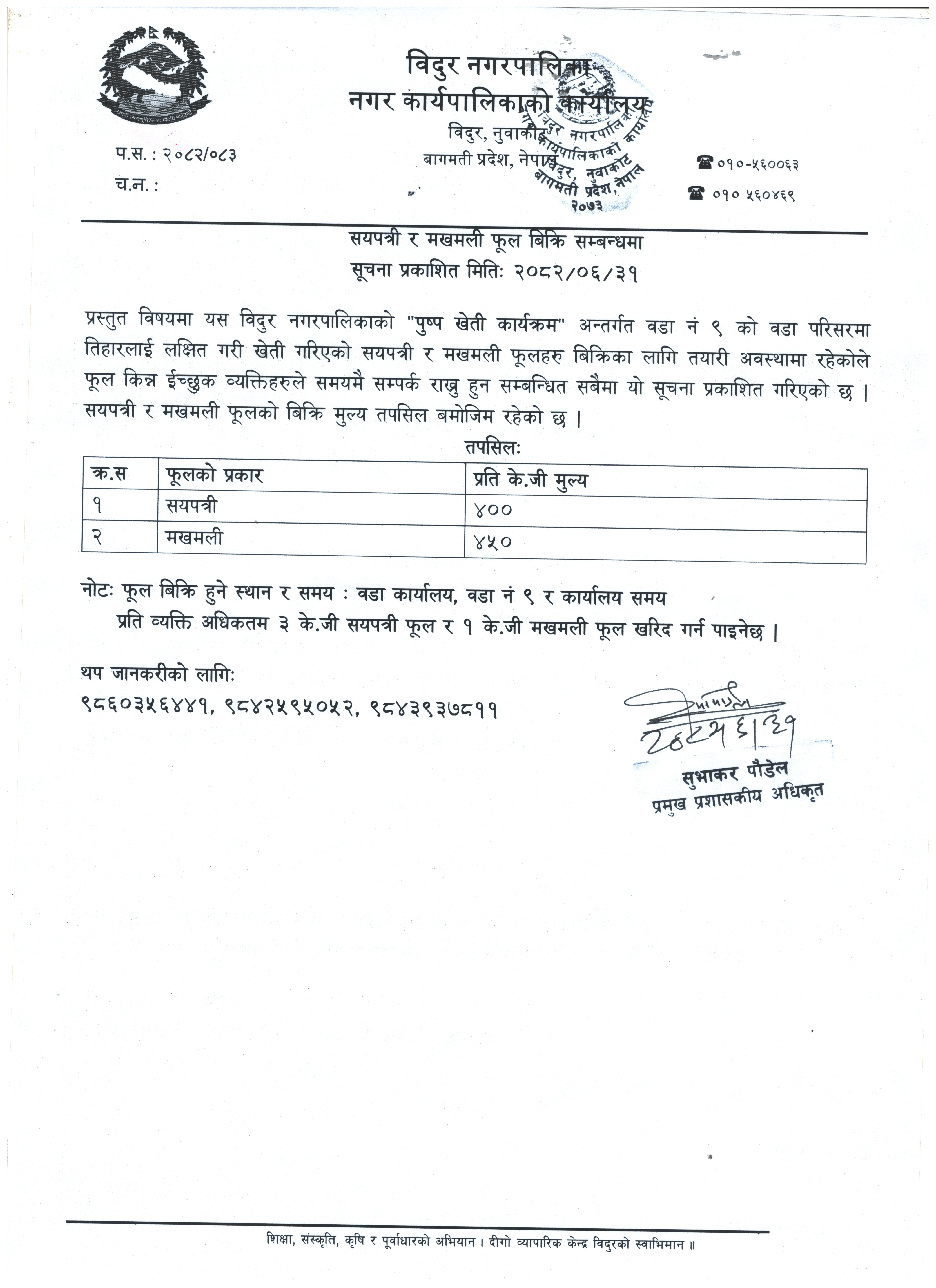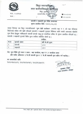 सयपत्री र मखमली फूल बिक्रि सम्बन्धी सूचना ।